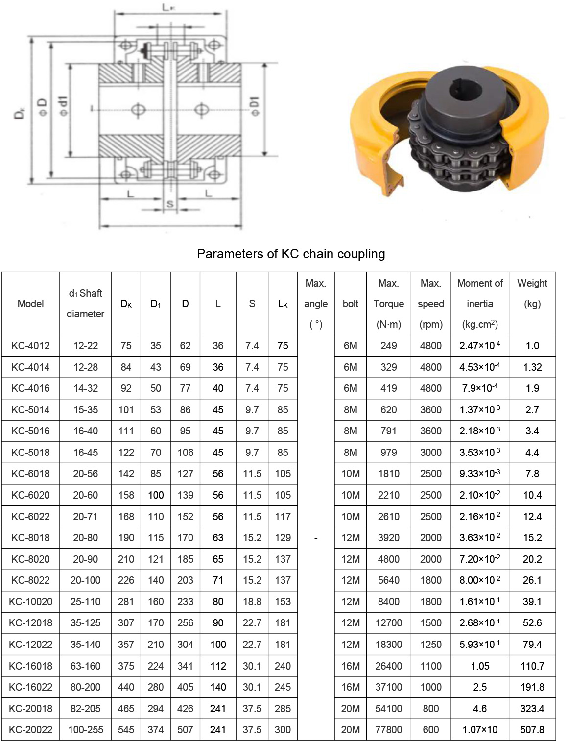 KC chain couplings can tolerate angular and parallel misalignment as well as some end float, offering reliable performance under conditions where perfect alignment is not possible. They are typically used in machinery such as conveyors, pumps, mixers, and compressors.