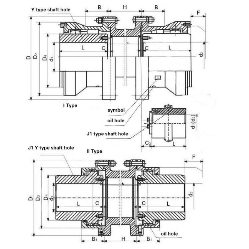 Effectively compensates for angular, axial, and small radial misalignment between shafts.Robust and durable structure