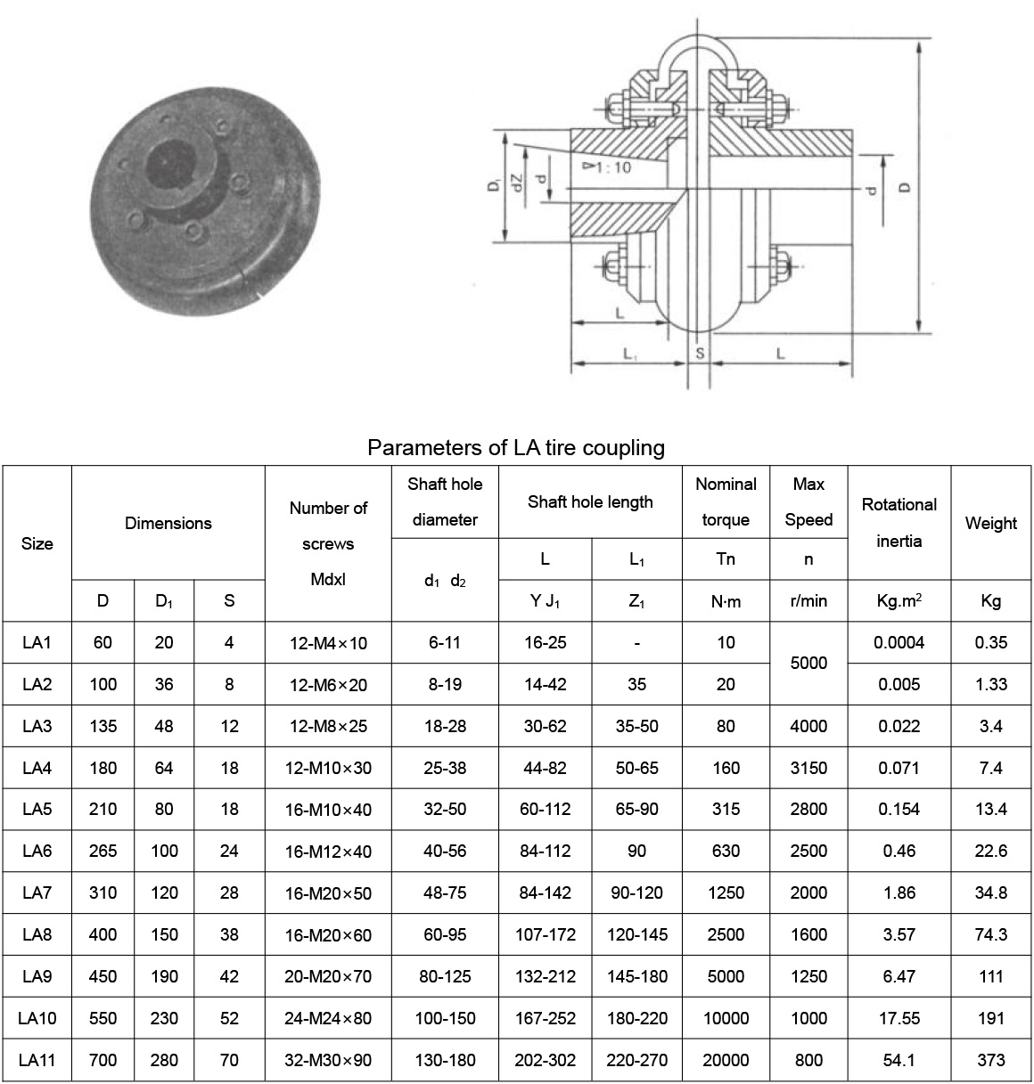 The LA Type Tire Coupling is a high-performance flexible shaft coupling designed for reliable torque transmission and superior misalignment accommodation. Engineered with simplicity and durability in mind, this coupling is widely used in power transmission applications where equipment alignment is difficult or where vibration damping is critical.